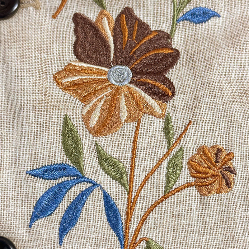 Men's Casual Linen Embroidered Stand Collar Single Breasted Slim Fit Jacket