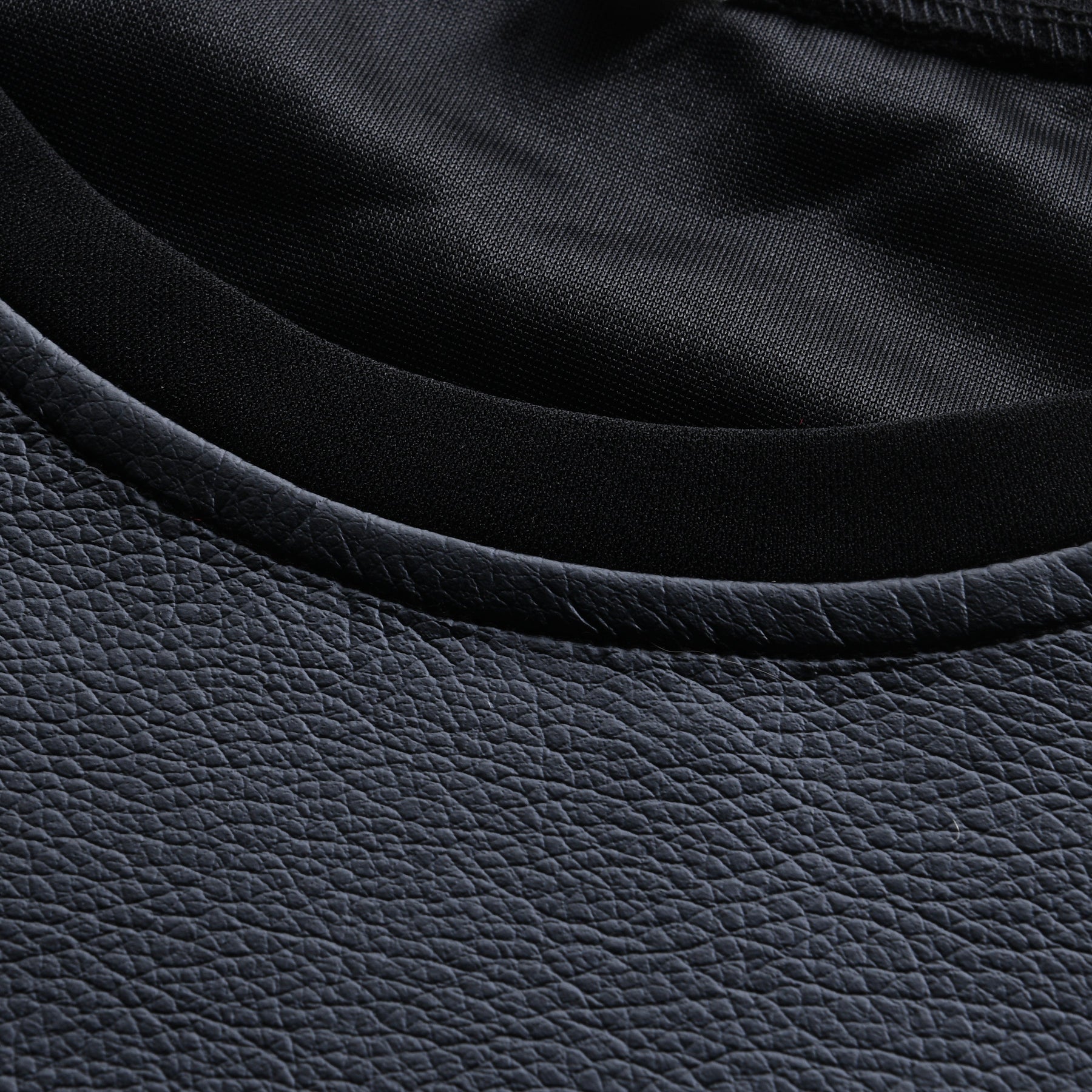 Men's Fax Leather Stitchingip-p Rond Neck Long-sleeved T-shirt(Internal T-shirt not inclded)