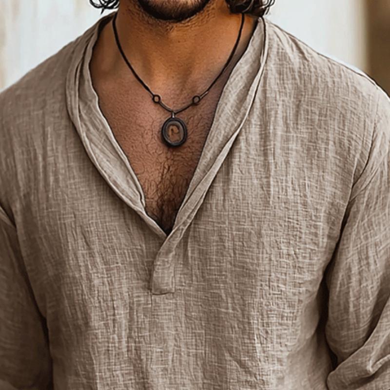 Men's Retro Casal Cotn and Linen Long Sleeve Shirt