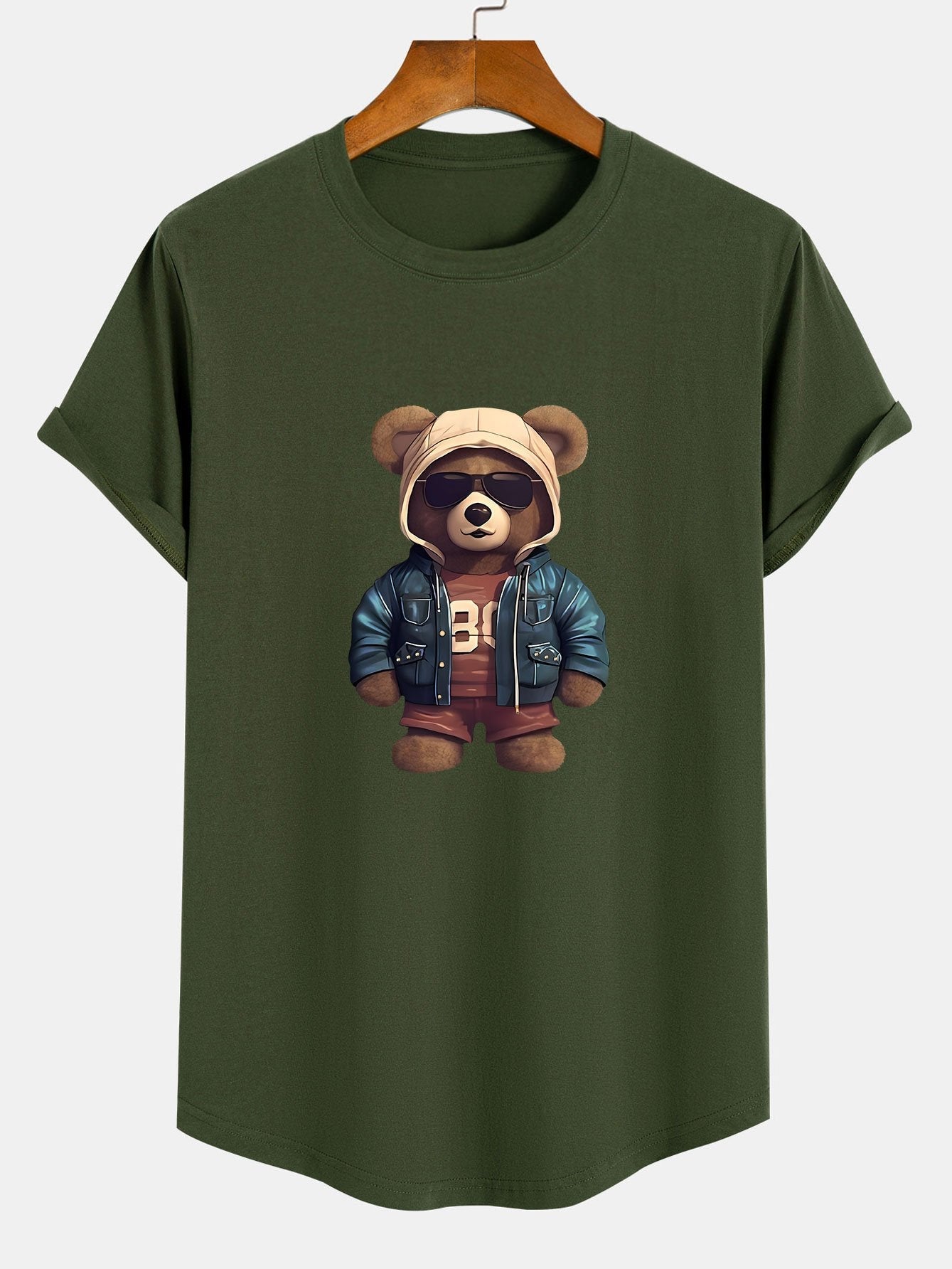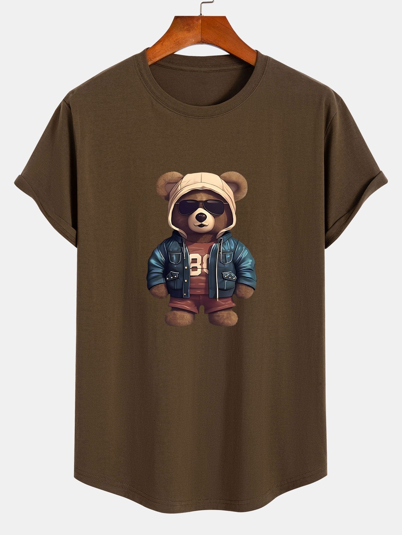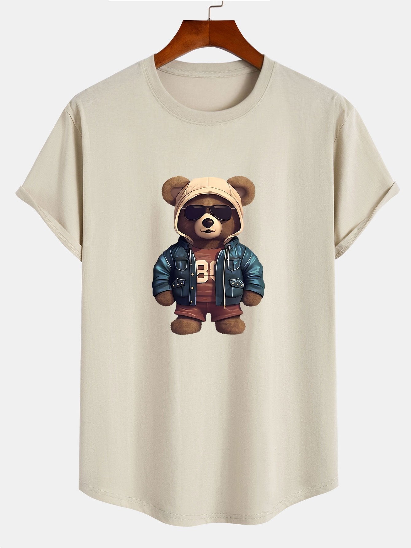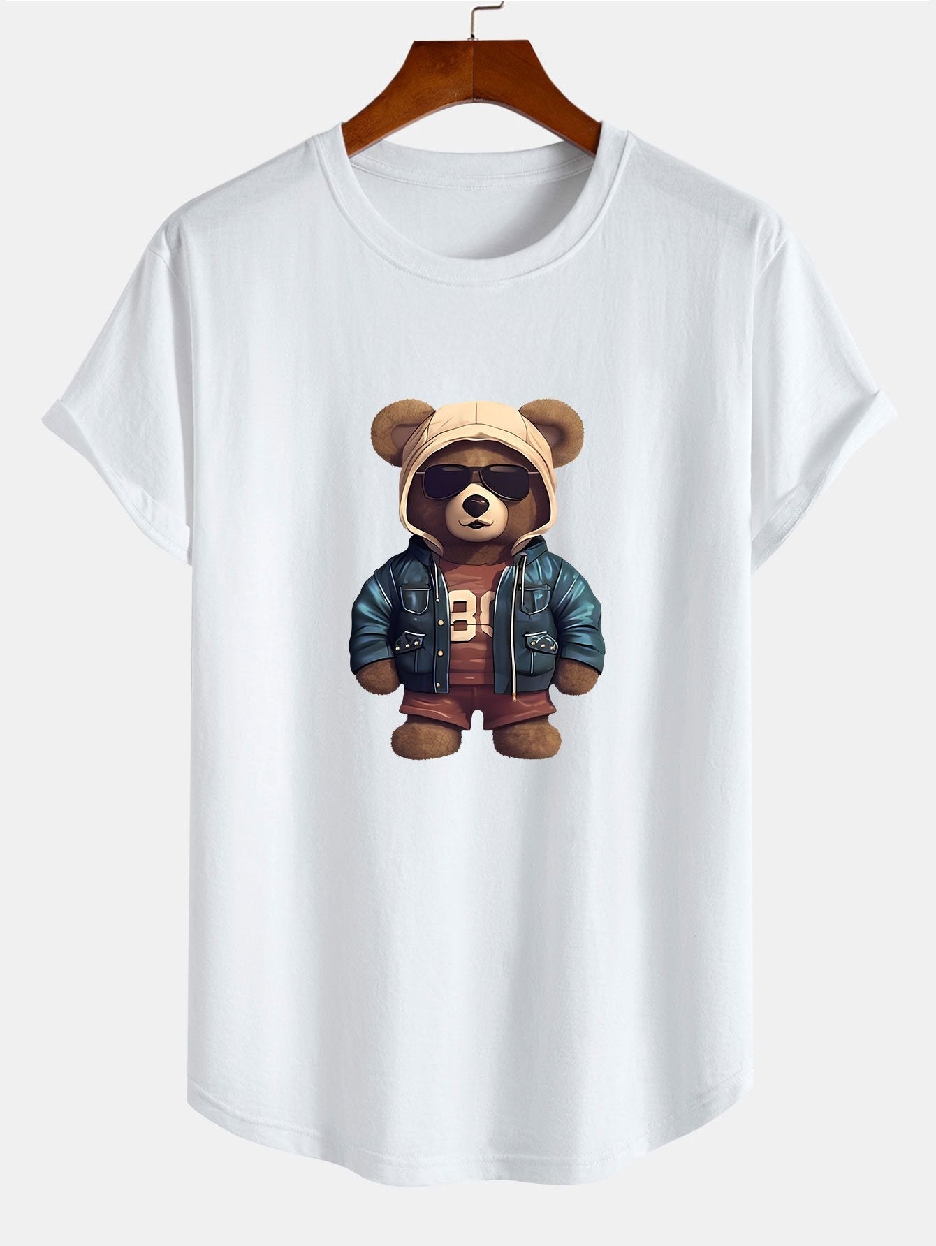 Benjamin® | Bear In Leather Jacket Print Cotton Arc Hem T-Shirt
