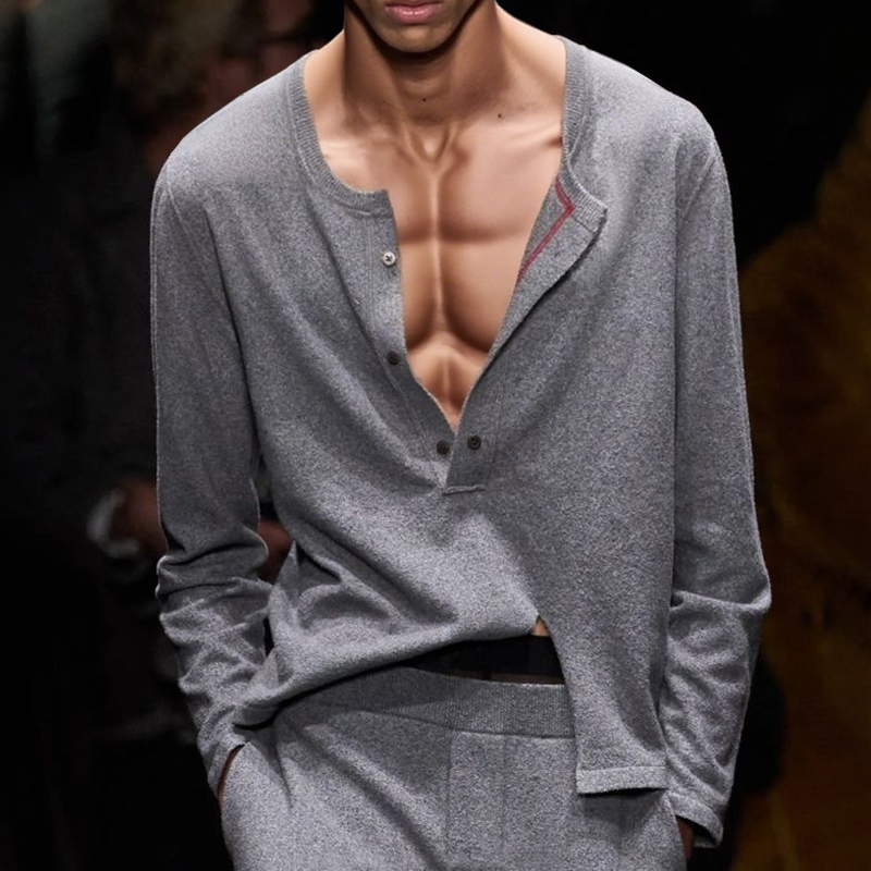 Remy | Men'S Solid Loose Henley Collar Long Sleeve Knit Sweater