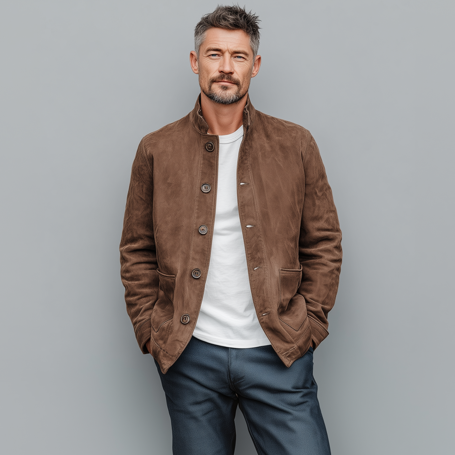 Rodrigo | Men'S Retro Casual Thin Suede Wooden Button Stand Collar Jacket