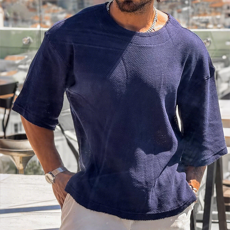 Bernard | Men'S Retro Casual Street Solid Color Loose Round Neck Short Sleeve T-Shirt