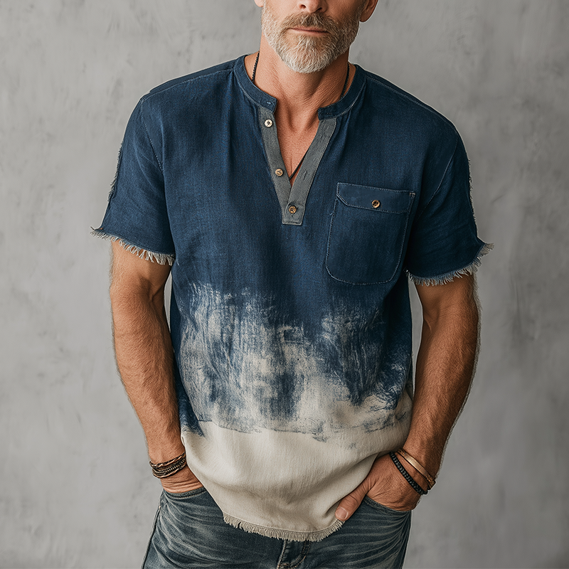 Cordell | Men'S Summer Fashion Gradient Printed Polyester Blended Short Sleeve Henley Shirt