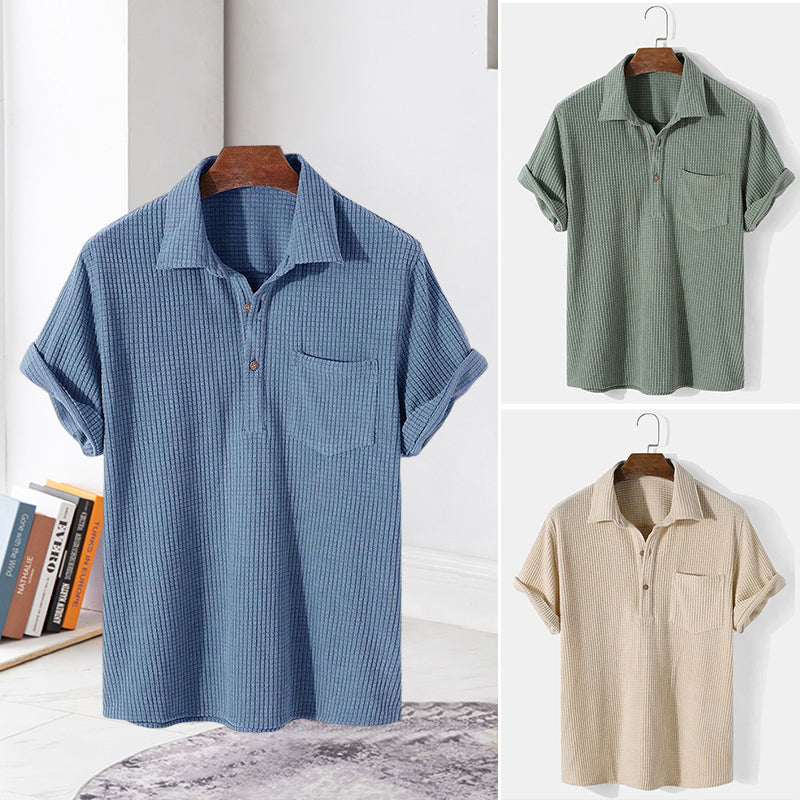 Jye® | Men'S Plaid Short Sleeve Loose Solid Color Lapel Shirt