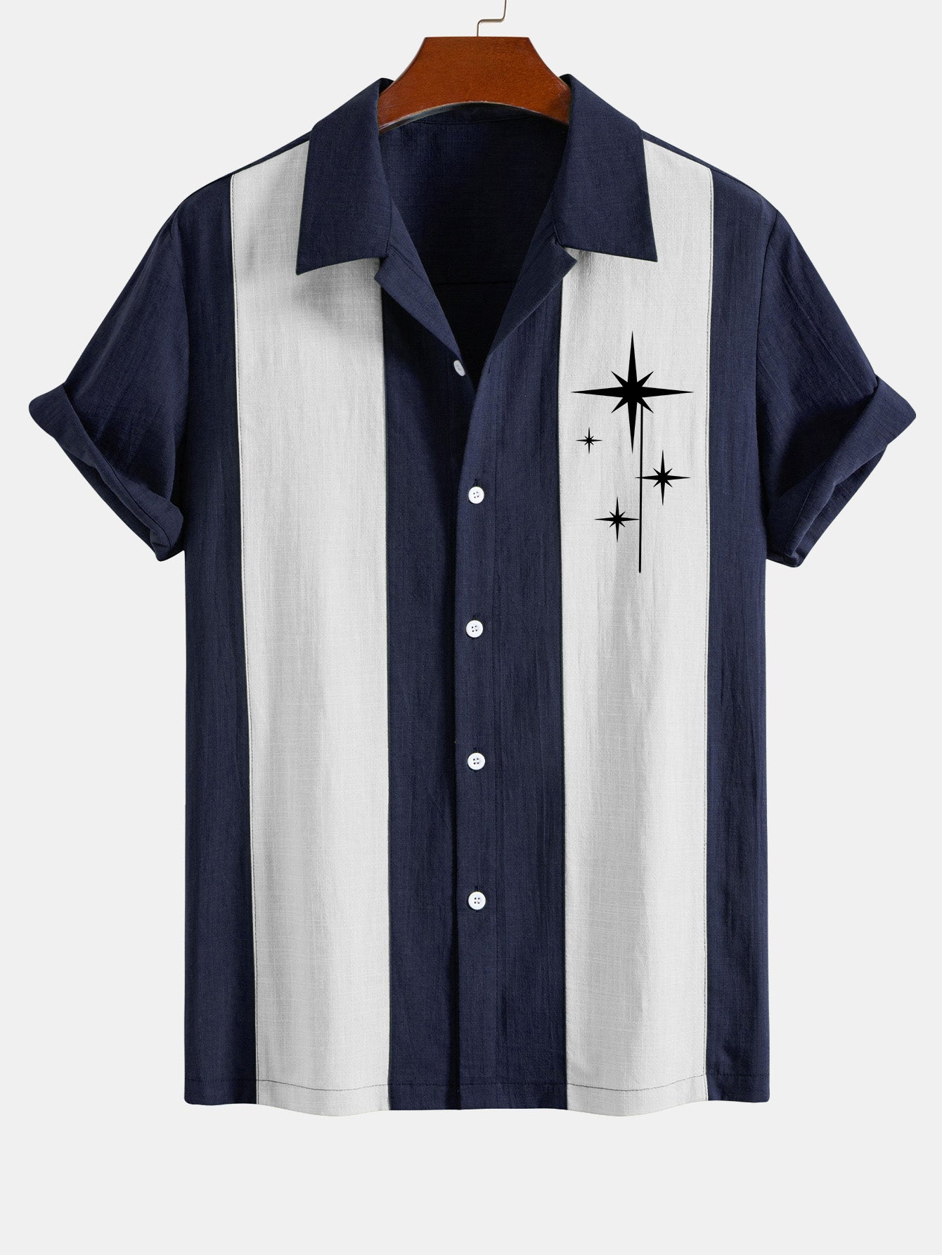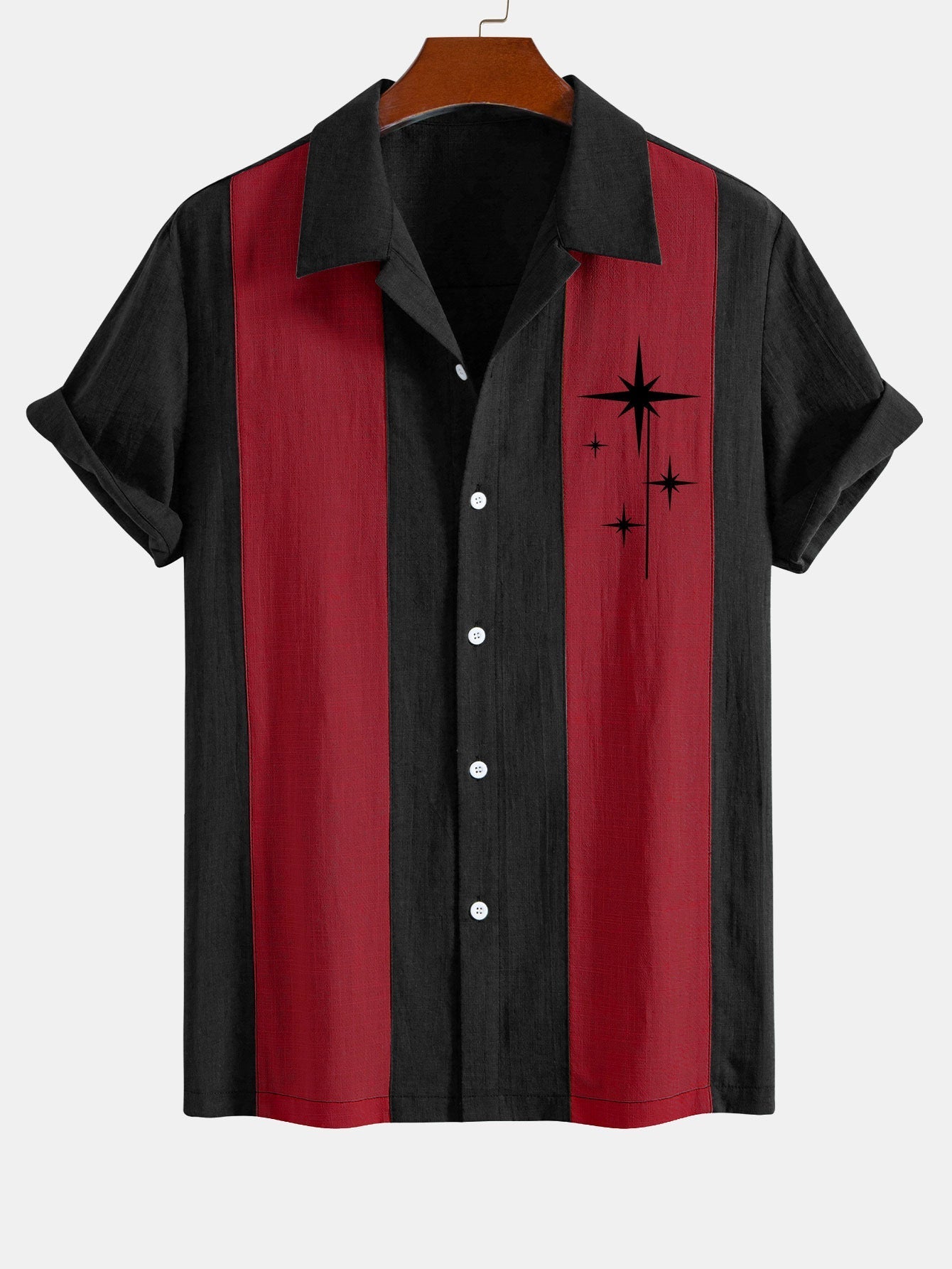 Leoncio® | Mid Century Starbursts Print Linen Look Patchwork Bowling Shirt