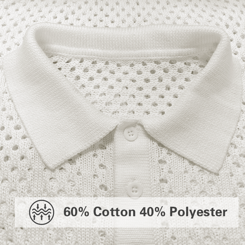 Marco | Men'S Solid Hollow Out Plaid Knit Lapel Short Sleeve Polo Shirt
