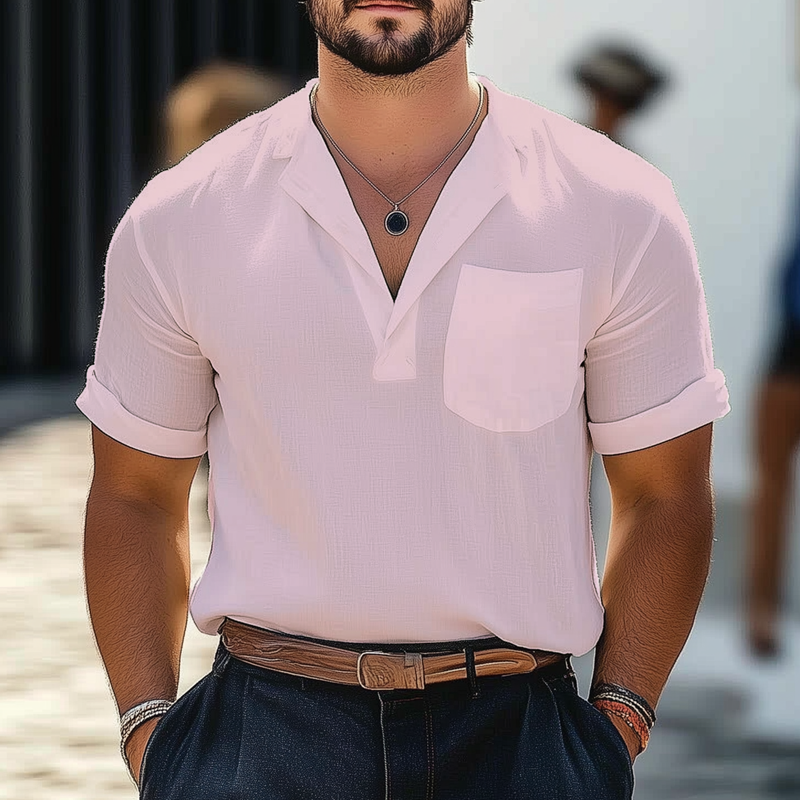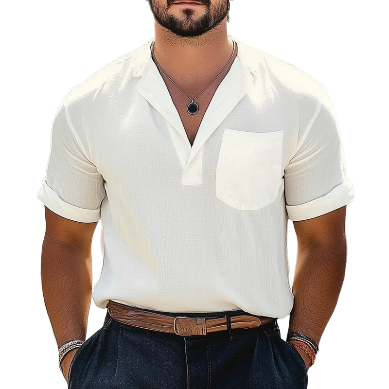 Rick | Men'S Summer Business Cotton And Linen V-Neck Short-Sleeved T-Shirt
