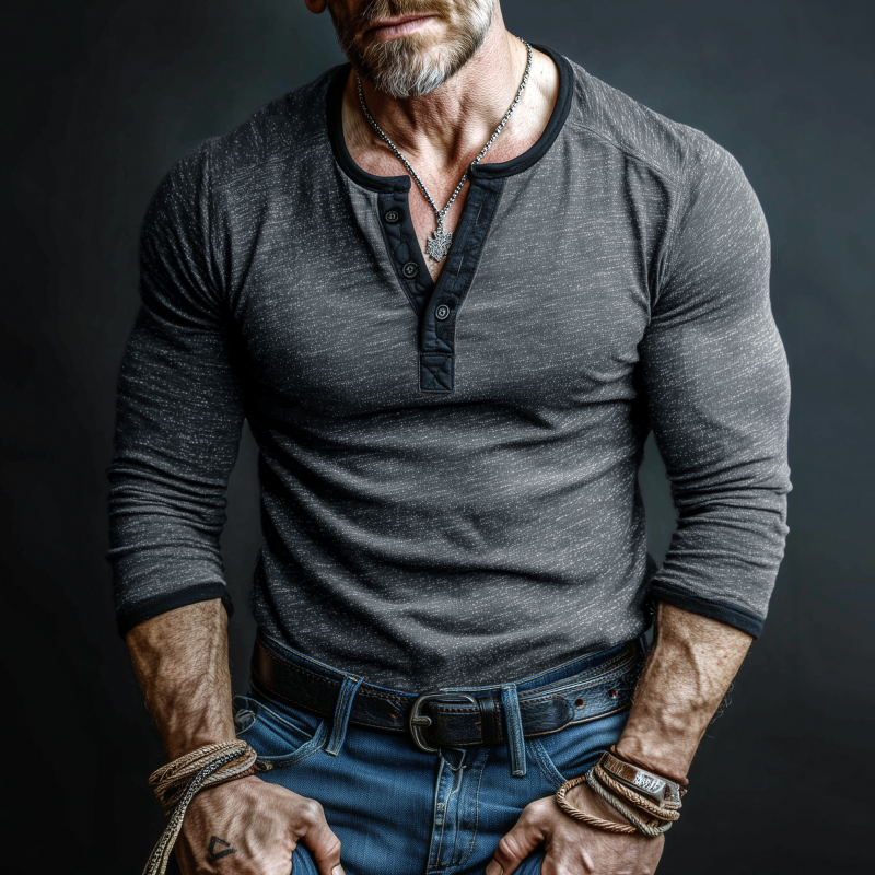 Roberto | Men'S Casual Cotton Contrast Color Patchwork Henry Collar Slim Fit Long Sleeve T-Shirt