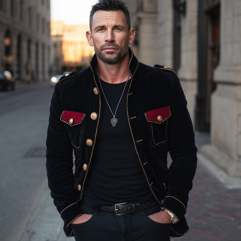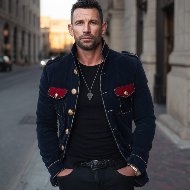 Men's Vine Stand Collar Velvetlti-Btn Jacket